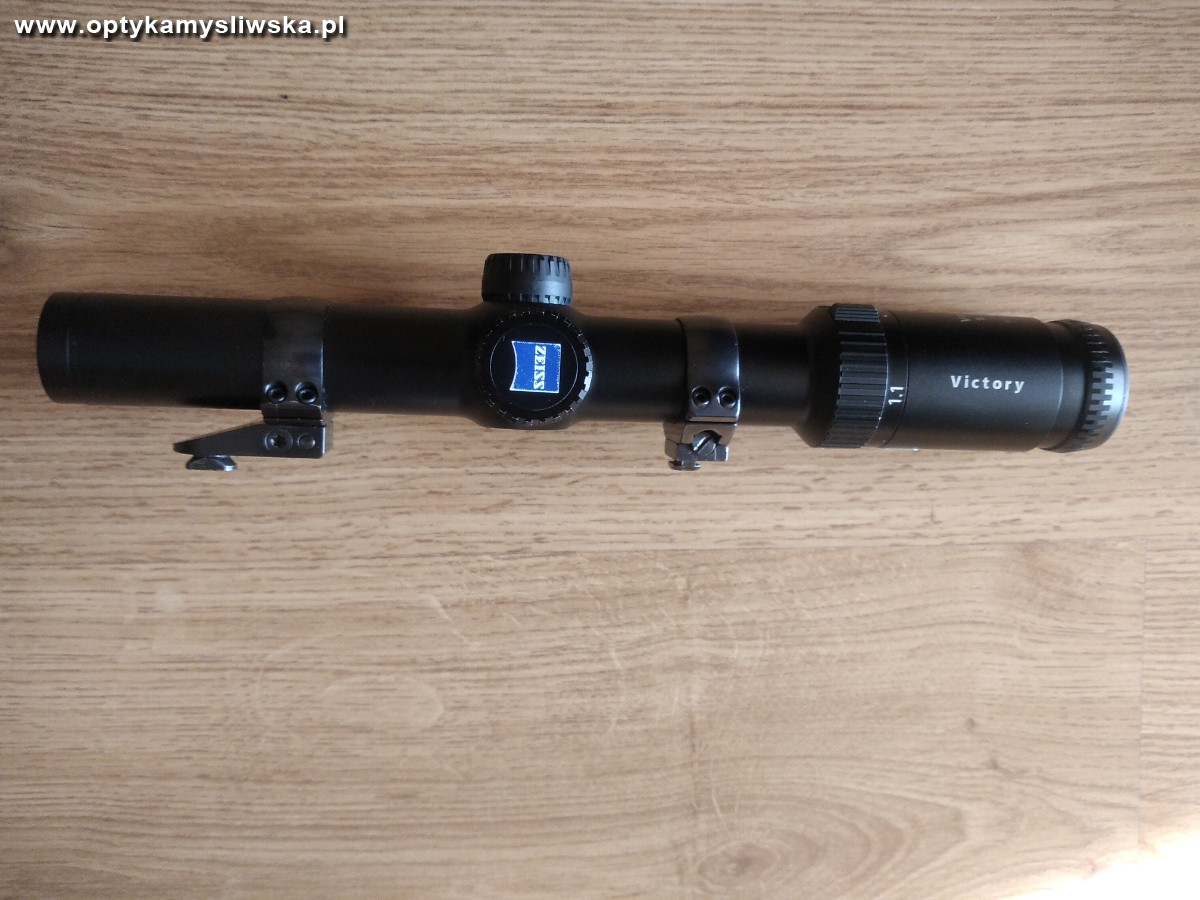 Luneta biegowa Zeiss Victory Varipoint 1,1-4x24 z powłokami LotuTec ( zapobiegają osadzaniu się mgły i wody na soczewkach, co jest bardzo przydatne na polowaniach zbiorowych) Tubus 30 mm, siatka celownicza 60. Stan lunety bardzo dobry. Cena bez montażu.