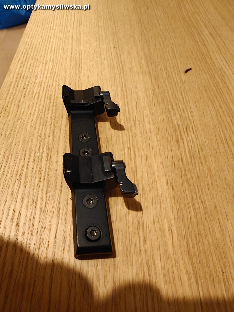 Na sprzedaż oryginalny szybki montaż siodłowy Merkel (pasuje m.in. na K5) do lunet z szyna Zeiss. Jedna śrubka trzymająca uchwyt lunety chyba nie jest oryginalna, ale trzyma znakomicie. Stan dobry+, trzyma bardzo dobrze. Nowy we Frankonii 500EUR.