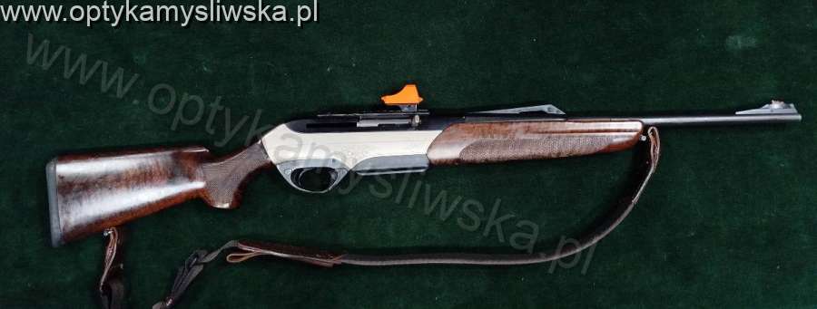 Broń ta słynie z niezwykłej szybkości oddawania kolejnych strzałów oraz niezawodnego systemu odprowadzania gazów, który znacząco redukuje odrzut, co jest szczególnie istotne przy kalibrze. 30-06.Prezentowany egzemplarz jest wyposażony kolimator Docter, co czyni go kompletnym zestawem idealnym do polowań zbiorowych, gdzie kluczowy jest szybki skład i błyskawiczne namierzenie celu obuocznie.