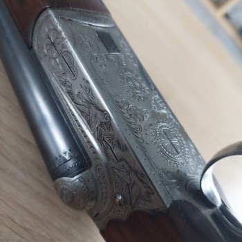 (czytaj więcej)Dubeltówka SIMSON kal.12/70, piękny głęboki grawerunek. Znak jakości Q1 wskazujący wyjątkową jakość. Stan bardzo dobry całość w orginalnym stanie nigdy nie była odnawiana.