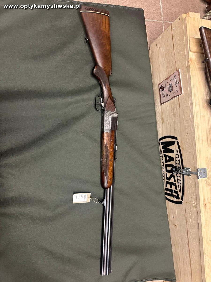 Kniejówka Merkel model 211 9,3x74R 12/70. Ładna klasyczna, grawerowana kniejówka, rzadko występująca w tym kalibrze. Wnętrze luf bdb, brak luzów.