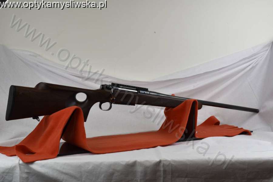 sztucer w stanie bardzo dobrym,bardzo precyzyjny,lufa 61cm,całkowita 114 cm,waga 3,9kg,kolba ciemny orzech,szyna picatinny do montażu lunety,spust match,gwint na lufie 18x1