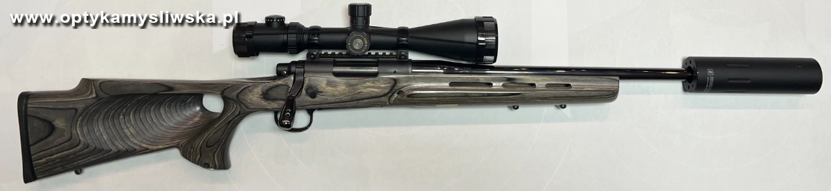 Używany Sztucer Remington 700 kal. 308WIN z kolbą thumbhole, tłumikiem, szyną picatinny oraz założoną lunetą Delta Optical 4,5-30x50 w bardzo dobrym stanie Tłumik Hush-Tac 14x1 Długość lufy: 45cm Grubość lufy: 17,5mm