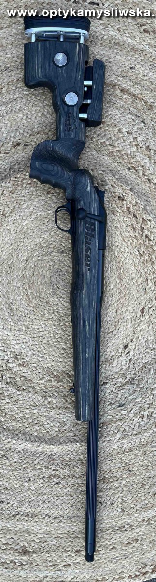 Blaser R8 w unikalnej wersji. Szara osada sklejkowa GRS z regulowaną baką oraz stopką (na długość plus góra/dół) oraz szyną UIT. System ATZL. Lufa 308 Win. profil Match (22 mm średnica, długość 60 cm) z żebrowaniem oraz gwintem 18x1. Wystrzelane poniżej 300 szt., żadnej "elaborki" tylko Lapua Scenar. W komplecie praktycznie nowy tłumik Recknagel ERA Loc (szybkie złącze) "z przebiegiem" max. 20 strzałów . Broń w stanie idealnym.