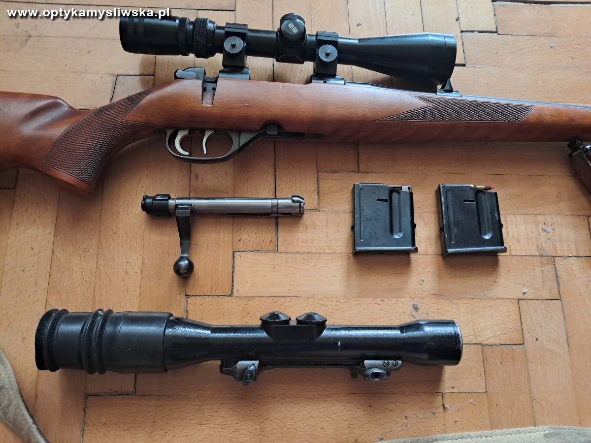 Sztucer nie używany sportowo Oddane ok 200 strzałów z amunicji zachodniej Lufa lustro Luneta Meopta 3-9x42 Artemis + druga luneta 4x32 Carl Zeiss Jena z montażem Zapasowy magazynek Stan idealny
