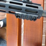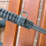 Posiada system montażu M-Lok w przednim łożu oraz czteropozycyjną kolbę teleskopową z regulowaną baką policzkową.