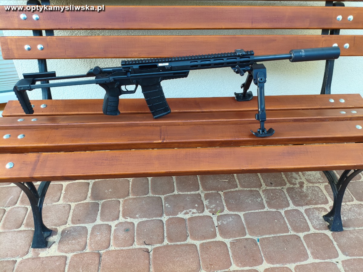W opcji: zestaw z tłumikiem A-Tec AR 40-3 gen.2 kal. 5,56 mm, gwint M15x1 (kompatybilny z tym karabinem). Wartość samego tłumika: 1 000 zł.