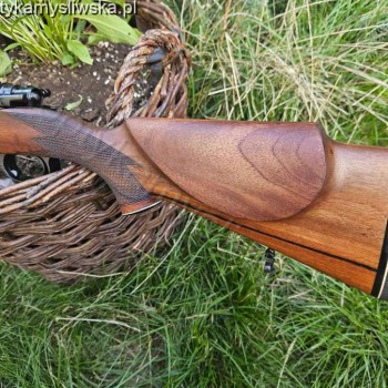 Sztucer Heym w kal. 7x64 z lunetą Zeiss 6x42 T* na montażu obrotowym. Piękna i składna broń. Lufa ze stali Kruppa, osada ze zdobieniami, zamek wykończony na słoneczny splot. Stan broni doskonały, kaliber bardzo przyjemny i bardzo celny. Mogę zamontować inną lunetę, np. biegówkę za dopłatą.