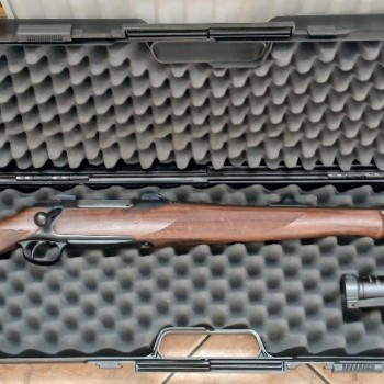 (czytaj więcej)Komplet w doskonałym stanie, niezwykle celna, świetnie wyważona i lekka - 2,7kg bez lunety - wykończenie w bawolim rogu, schaftmagazin, napinacz iglic. Mozliwość zamiany na sztucer dwutaktowy w tej samej kwocie. Nie odpowiadam na sms