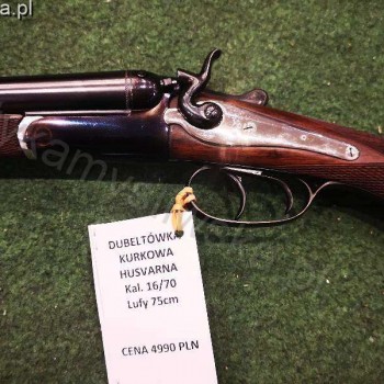 (czytaj więcej)Posiadamy w ofercie używaną dubeltówkę kurkową marki Husgvarna w kalibrze 16/70 lufy długości 75 cm Broń w nienangannym stanie technicznym i wizualnym - kolekcjonerskim. Broń można obejrzeć i wypróbować na terenie strzelnicy PZŁ w Gdańsku. Wszelkie informacje pod numerem tel. 605 666 205. Cena do ne...