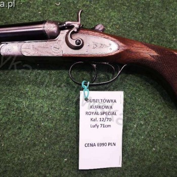 (czytaj więcej)Posiadamy w ofecie używaną dubeltówkę kurkową marki Royal Special w kalibrze 12/70, długość luf 71cm. Broń w bardzo dobrym stanie technicznym i wizualnym. Broń mozna zobaczyć i wypróbować na terenie strzelnicy PZŁ w Gdańsku. Wszelkie infomacje pod numerem 605 666 205. Cena do negocjacji 6990 zł