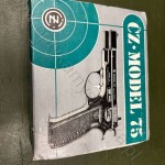 Pistolet CZ75 1980r kal. 9x19mm. Broń w unikatowym oryginalnym stanie - brak śladów używania, oryginalne pudełko i drugi magazynek w zestawie. Broń w takim stanie to rzadkość, wczesna wersja w klasycznej oksydzie.