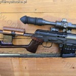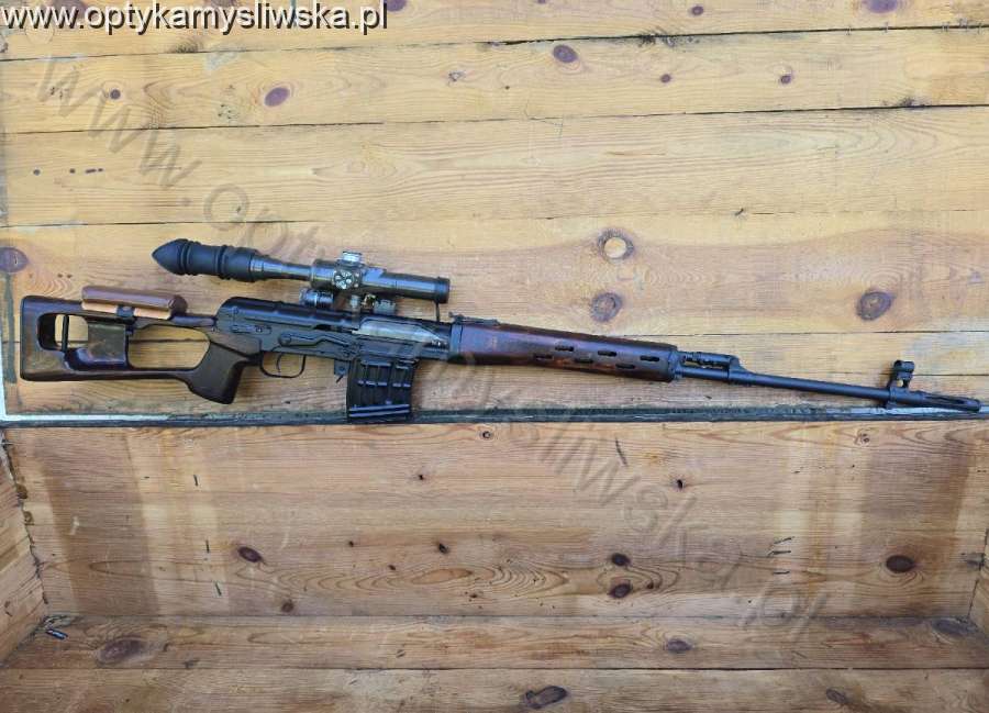 Karabin wyborowy SWD – Legendarna Snajperska Wintówka Dragunowa. Produkcja 1979 rok – Iżewsk. Kaliber 7,62x54R. Lufa w stanie bardzo dobrym – lustro. Rzadka wersja wojskowa i to w takim stanie zachowania. W komplecie oryginalna optyka PSO wraz z pokrowcem. Ładownica z wyciorem i 5 magazynkami. Pas nośny oraz dwójnóg. Lokalizacja Brzoza pod Bydgoszczą. Tel. 790-280-454 - www.olimparms.pl