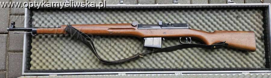 Karabin Ljungman Ag m/42, kal. 6,5x55. Broń w stanie bardzo dobrym i w pełni zgodna numerycznie. Jak widać na broni znajduje się medalion określający stan broni. Broń jest w komplecie z pasem. Karabin przyjechał do nas z Niemiec, więc został wykastrowany: szczerbina ograniczona do 300m, a magazynek do 5 naboi. Dlatego w cenie dokładam drugi magazynek w pełnym zakresie wraz z 3 szt. oryginalnych naboi. Ponieważ to mój ostatni karabin w tym kalibrze, w cenie dokładam również ok. 100 naboi wraz z kilkoma łódkami nabojowymi. Wartość dodatków to ok. 1000zł. Możliwość drobnej negocjacji. Jestem z Gdańska. Kontakt: ratecs(at)poczta.fm, tel. 698_94trzy_dwa87