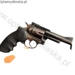 Amerykański rewolwer Ruger Security Six w kalibrze. 357 Magnum, klasyka wśród konstrukcji z lat 70. i 80. Ten egzemplarz został wyposażony w okładziny Hogue Monogrip, które poprawiają ergonomię i komfort strzelania. Solidna konstrukcja Rugera zapewnia wysoką wytrzymałość i niezawodność, przez co model ten był chętnie wybierany zarówno przez cywilów, jak i służby mundurowe w USA. Stan dobry – miejscami widoczne przetarcia oksydy, ale broń w pełni sprawna technicznie.