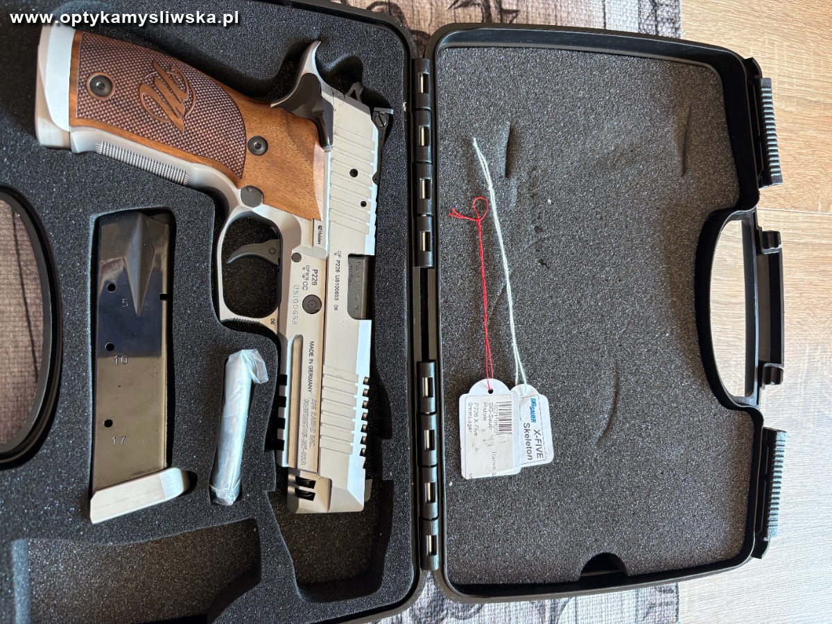 Dzień dobry do sprzedania mam pistolet Sig Sauer P226 X- FIVE Skeleton w stanie idealnym. W zestawie dwa magazynki i oryginalny kuferek.kaliber 9x19. Cena do rozsądnej negocjacji.