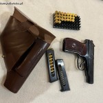 Sprzedam w stanie KOLEKCJONERSKIM Pistolet Makarowa – radziecki pistolet samopowtarzalny kalibru 9 mm. Pistolet jest w stanie idealnym wraz z dwoma magazynkami z amunicją oraz oryginalną idealną brązową kaburą . Powtórek jest z 1963r .