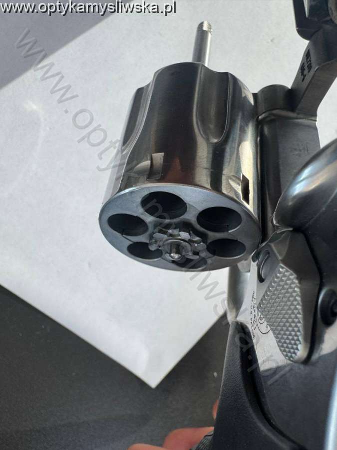 Przepięknie i precyzyjne wykonany rewolwer ze stali nierdzewnej w satynowym wykończeniu powierzchni z 6″ lufą. Stan idealny, jestem pierwszym właścicielem. Bardzo mało strzelany.