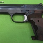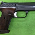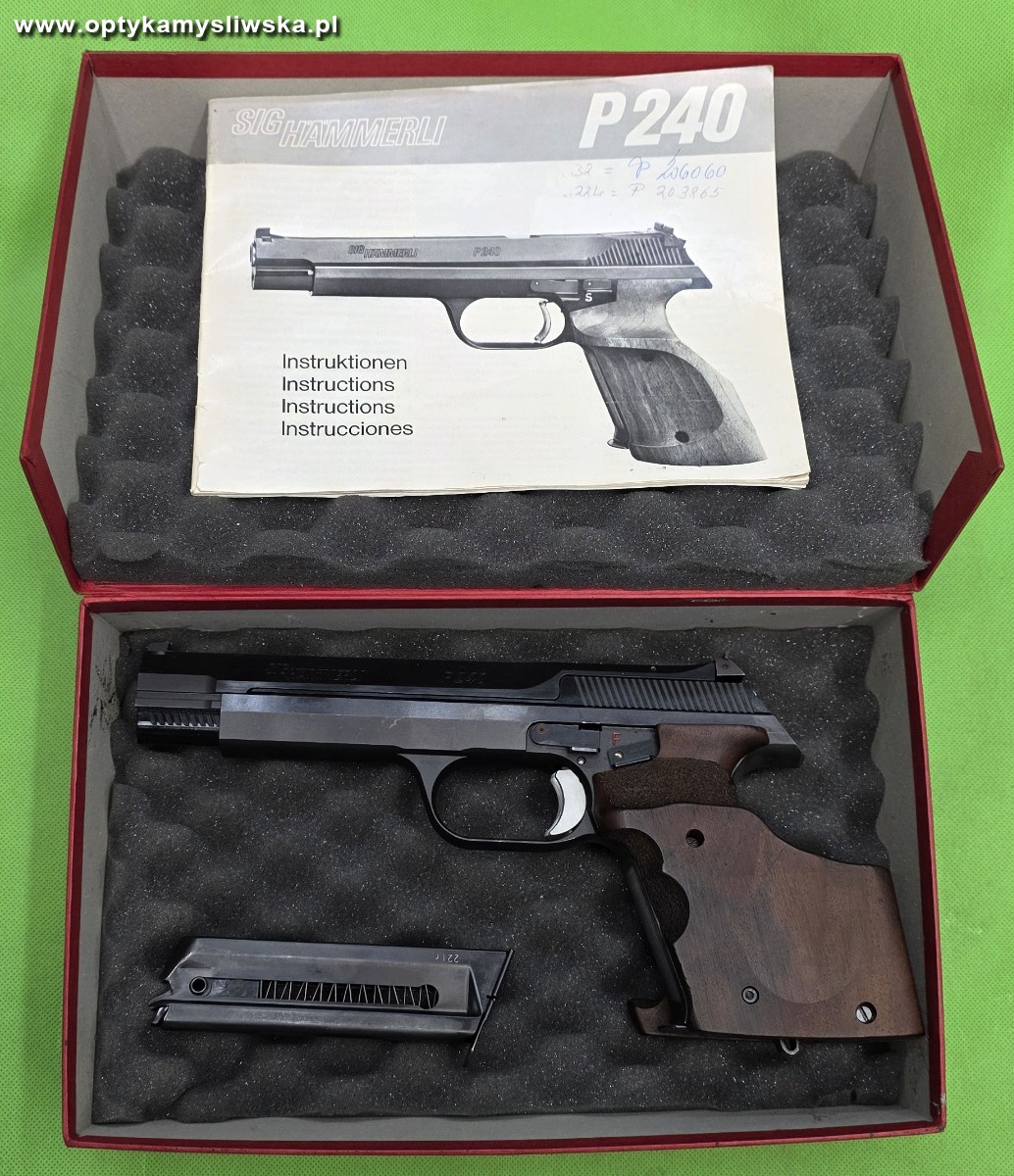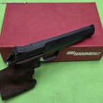 Niezwykle rzadki rzadki, legendarny, szwajcarski pistolet tarczowy, wykonany w całości ze stali metodą frezowania. Model wzorowany na P210: tak jak tam zamek pracuje wewnątrz szkieletu, dzięki czemu cała konstrukcja jest bardzo sztywna, a zarazem niezwykle precyzyjna. Pistolet ten był produkowany w latach 1974 – 1887 , a w kalibrze .22 lr, jak podają niektóre źródła, wykonano tylko 200 kompletnych egzemplarzy (produkowano również oddzielnie systemy konwersyjne w tym kalibrze). Oferowany tu egzemplarz został wyprodukowany w 1986 r. Broń jest perfekcyjnie wykonana i niezwykle celna. Doskonały mechanizm spustowy – uderzeniowy pojedynczego działania z zewnętrznym kurkiem, szczerbina regulowana mikrometrycznie. Pistolet znajduje się w idealnym stanie – jest jak nowy – oczywiście lufa nieskazitelna. Wszystko w 100% oryginalne i zgodne numerycznie. W komplecie oryginalne wyposażenie: dwa magazynki, instrukcja obsługi oraz fabryczne pudełko.