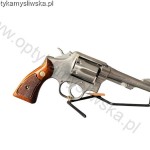 Klasyczny Smith & Wesson Model 64 w kalibrze. 38 Special, wyprodukowany w 1972 roku. Rewolwer w pełni stalowy, w wersji Inox (stal nierdzewna), wyposażony w lufę długości 4”. Model 64 był szeroko używany przez amerykańskie jednostki policyjne, w tym NYPD, ze względu na swoją trwałość i niezawodność. Prezentowany egzemplarz zachowany w stanie dobrym – mechanika sprawna, lufa czysta z wyraźnym gwintem, wizualnie nosi ślady typowe dla wieku. Solidna broń z historią, ceniona przez kolekcjonerów.