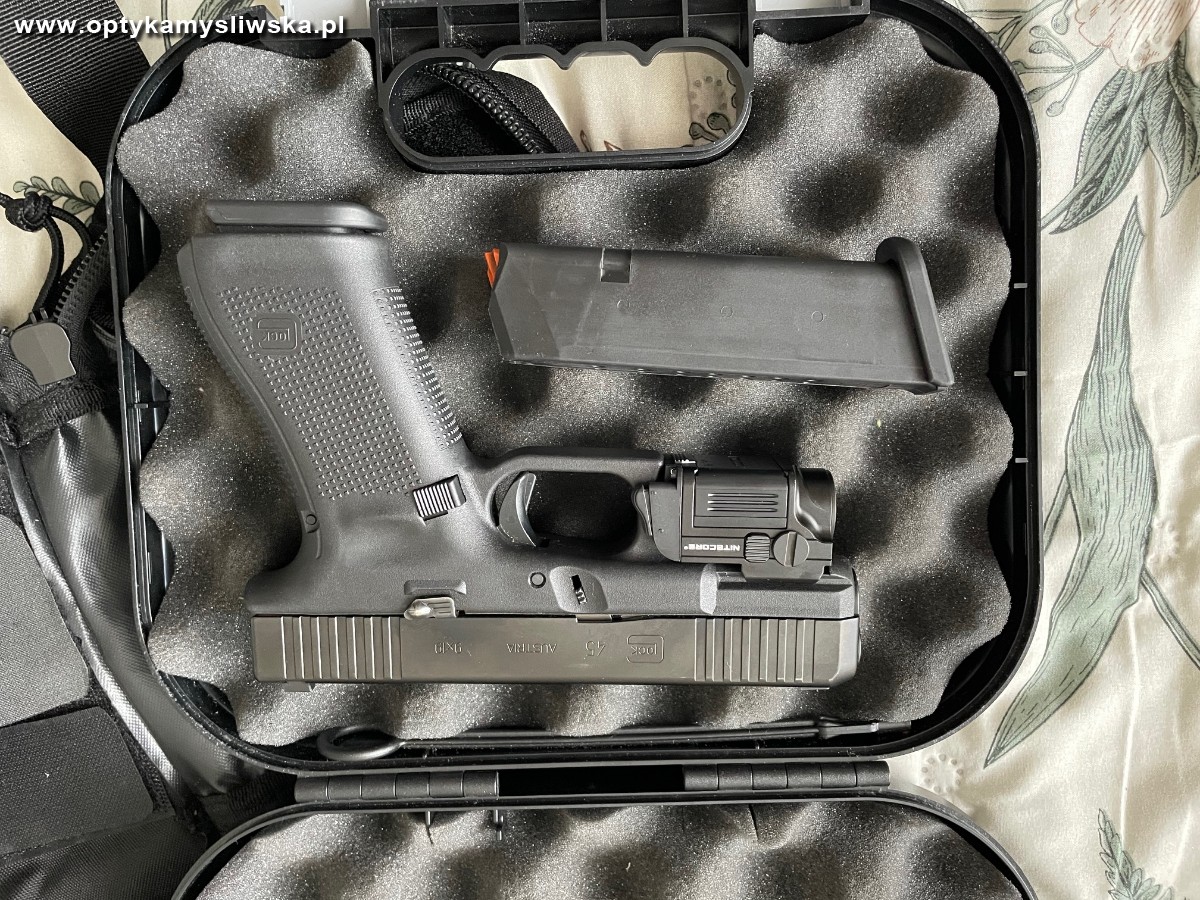Na sprzedaż posiadam pistolet Glock 45 FS gen. 5 rok prod. 2023. Broń w stanie bdb. Sprzedaję bo mam trochę za dużo pistoletów w kalibrze 9x19 i leżą. W cenie ogłoszenia kupujesz: zestaw sklepowy tj. walizka, broń, dwa magazynki, papierologia, wycior, ładowarka oraz dodatkowo stalowe mechaniczne przyrządy celownicze, muszka glock, szczerbinka ameriglo, dodatkowa muszka światłowodowa ameriglo, powiększony zrzut zamka glock, przerywacz 2kg glock.