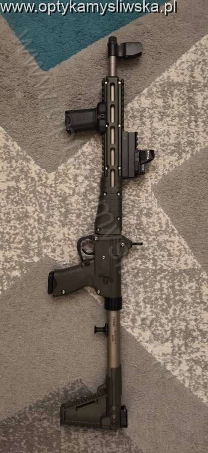 Kel-Tec SUB 2000 kal. 9x19. Niewielki przebieg, Stan idealny. W komplecie z mikrokolimatorem i chwytem przednim - w tej konfiguracji jest super składny i wygodny. Pasują magazynki od Glocka. Polecam, przyjemnie się z niego pstryka do popperów.