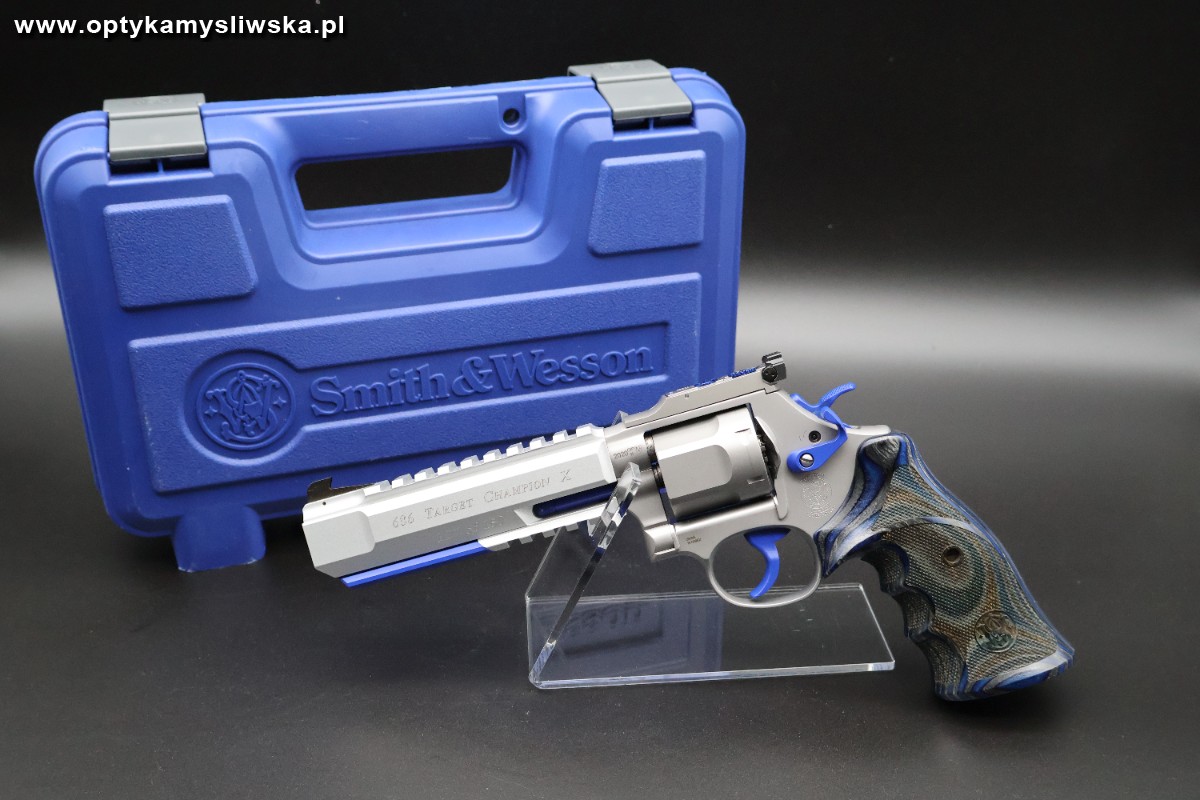 Smith & Wesson M686-6 Target Champion X - wyjątkowy rarytas na naszym rynku. Wyprodukowano tylko 150 egzemplarzy tej jednostki. Odkupiony w ramach całej kolekcji od osoby która zrezygnowała ze strzelectwa z powodów zdrowotnych. Poczytaj więcej o tej jednostce wklejając poniższy link w przeglądarkę: https://www.all4shooters.com/de/shooting/kurzwaffen/waimex-smith-wesson-686-target-champion-x-357-magnum-sondermodell-limitiert-test-bericht/