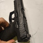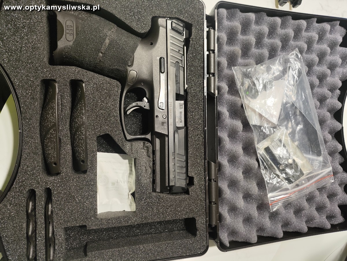 W zestawie: płytka montażowa nr 2, 3 magazynki, dodatkowy zestaw tuningowy sprężynek spustu (jedna z nich zamontowana — zmniejsza wagę spustu), oryginalne opakowanie fabryczne, walizka. Na rękojeści taśma antypoślizgowa — łatwa do zdjęcia.