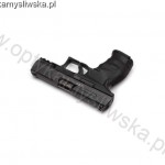 Stan bardzo dobry. Powłoki w stanie bardzo dobrym - brak najmniejszych zarysowań, wytarć i uszkodzeń (widoczne nierównomierności koloru powłoki pochodzą od roztartego oleju). Przewód lufy w stanie idealnym - krystalicznie nieskazitelny, potwierdzony badaniem boroskopem Hawkeye. Polimerowy szkielet w stanie bardzo dobrym - bez zarysowań i uszkodzeń. Pistolet sprawny, po przeglądzie rusznikarskim i testach na strzelnicy. W zestawie cztery magazynki, szybkoładowarka do magazynków, dwie dodatkowe nakładki uchwytu, tarcza pierwszego przystrzelenia, oryginalna instrukcja, oryginalne pudełko. Długość całkowita: 18cm, wysokość 13,5cm, długość lufy 102mm (4").