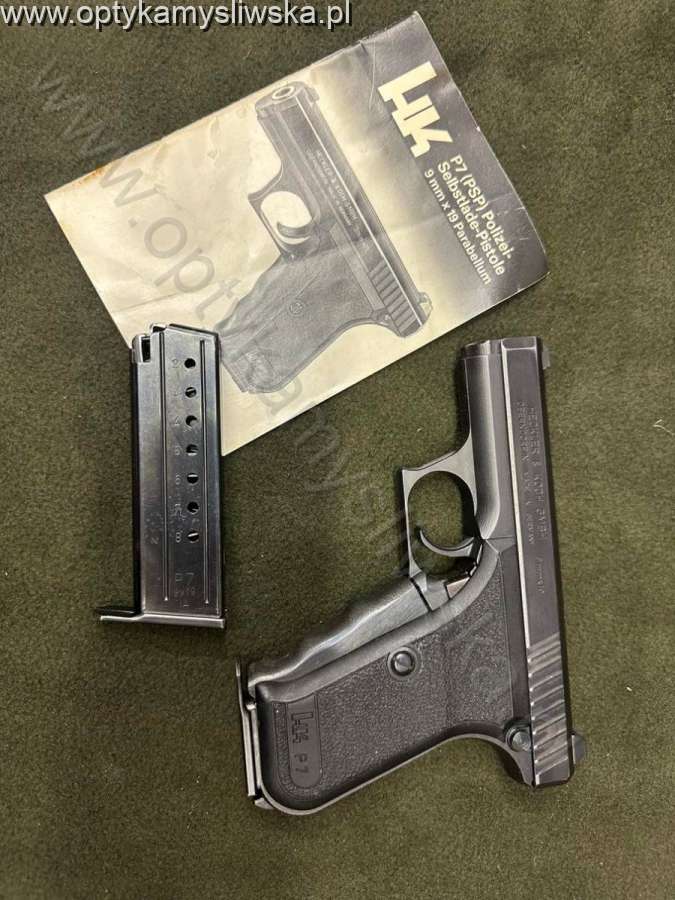 Pistolet Heckler & Koch P7 w kal 9x19. Broń w stanie idealnym, w komplecie drugi magazynek.