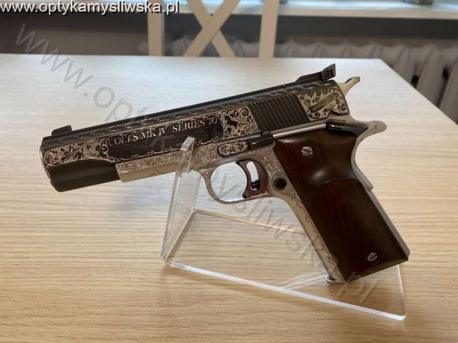 Sprzedam jak w temacie GRAWEROWANY COLT 1911 GOLD CUP NATIONAL MATCH SERIA 70 rok 1971, kaliber 45 ACP STAN PERFEKCYJNY JAK NA 55 LAT !!! Czarne elementy na zamku polerowane, błyszczące. Mało strzelany kupiony do kolekcji. Komplet jak na zdjęciu. 1 magazynek. Opakowanie zastępcze.. Telefon 609869447. Jeśli czytasz to ogłoszenie na pewno jest aktualne po sprzedaży zostanie usunięte!!!Dodatkowe zdjęcia na życzenie! Jeśli jesteś zainteresowany zadzwoń zaproponuj swoją cenę porozmawiamy, Wyprzedaż kolekcji.