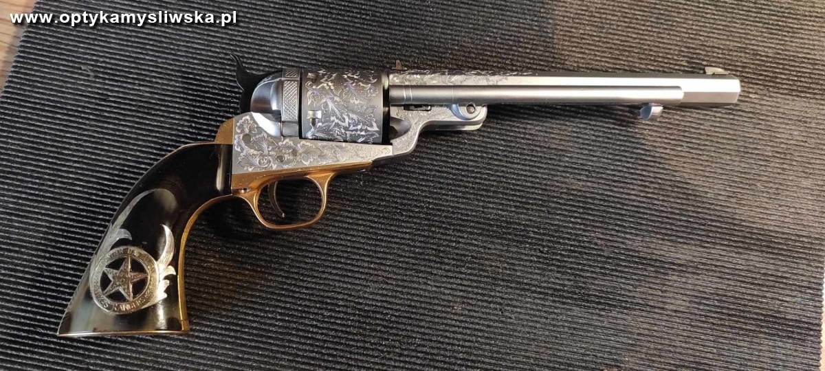 Sprzedam Colt Navy konwersja na 38 SP, wytworzony przez rusznikarza o sygnaturach KR w USA. Jest to pamiątkowy egzemplarz o nr jednostki 024 wręczany Strażnikom Teksasu przy odejściu na emeryturę. Broń jest bogato ręcznie grawerowana oraz ma rękojeść wykonana z rogu z inkrustacjami gwiazdy TEXAS RANGERS. Broń pochodzi z kolekcji i jest bardzo rzadko spotykanym egzemplarzem w USA, a w szczególności w Polsce. Colt Navy jest oczywiście sprawny i bardzo celny. Zakup możliwy wyłącznie na promesę i pozwolenie na broń.