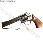 Smith & Wesson 586-3 w kalibrze. 357 Magnum to klasyczny rewolwer amerykański z końca XX wieku, zaprojektowany głównie do zastosowań służbowych i sportowych. Model ten opiera się na solidnej ramie typu L, wyposażony jest w sześciocalową lufę i mechanizm spustowy z podwójnym działaniem (DA/SA). 586-3 wyróżnia się wytrzymałą konstrukcją oraz precyzyjnym wykonaniem, co przekłada się na niezawodność w użytkowaniu. Rewolwery tej serii były chętnie wykorzystywane przez amerykańskie służby porządkowe w latach 80. i 90. XX wieku. Oferowany egzemplarz jest w stanie Bardzo dobry -. Świetny rewolwer do kolekcji. Broń dostępna w Fortguns obok Dęblina. Jest możliwość przestrzelania przed zakupem na prywatnej strzelnicy. Kontakt: 666 366 361.