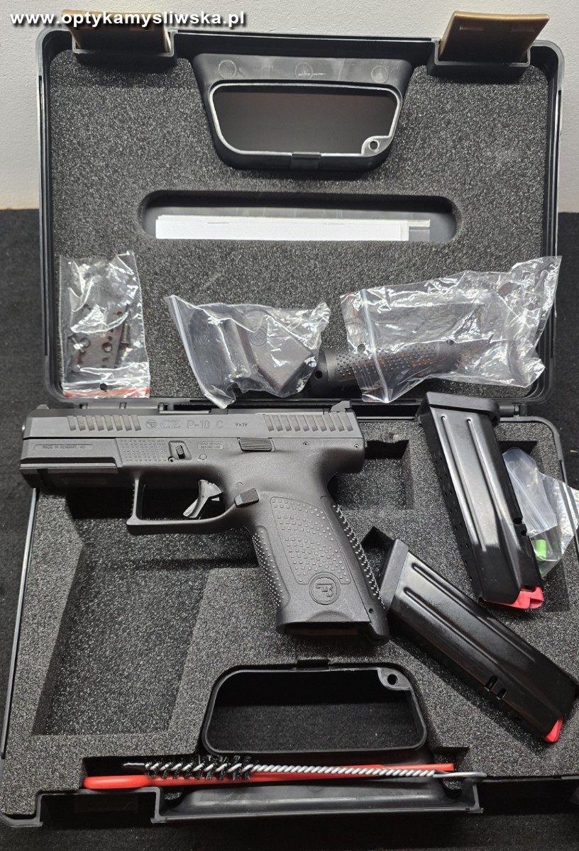 CZ P-10 C OR 9x19. Pistolet z 2025. Zestaw jaki daje producent. Pisotlet prtaktycznie nowy był 2x na strzelnicy co widać. Dla niemarudnego klienta drzucę kaburę GHOSTa i podstawę pod kolimator.