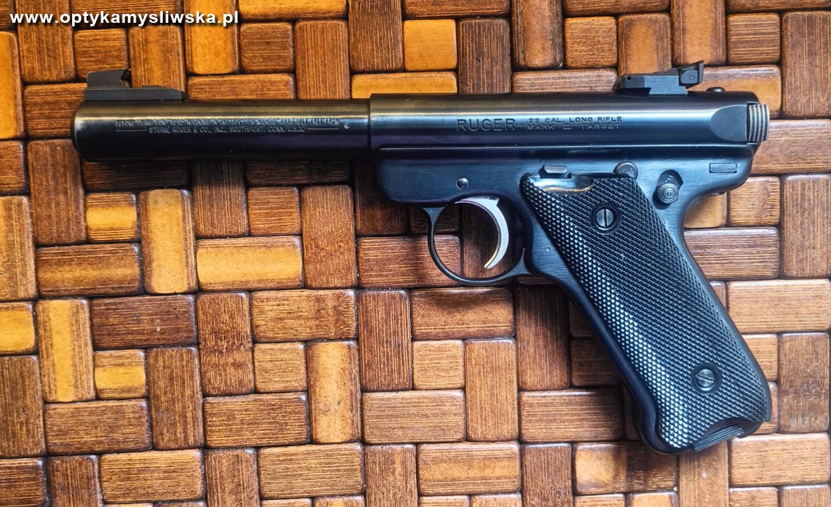 Ruger Mark II Target, stan idealny (oczywiście lufa lustro), sprawny, w zestawie jeden magazynek, okładziny Ruber Grips od Hogue (obecnie nie do kupienia w sklepie, w tym też w U.S. ) oryginalne okładziny w zestawie.