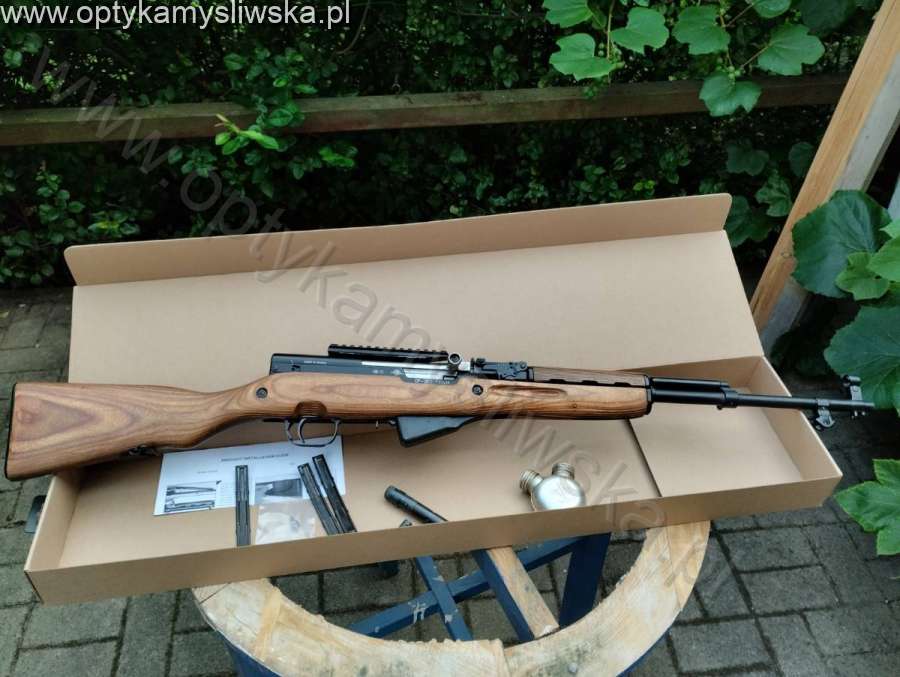 Karabin rok produkcji 2015 roku, zakupiony w stanie fabrycznym w sklepie wraz z 400 szt. amunicji Barnaul w roku 2021. Z 400 pestek zostało jeszcze kilkadziesiąt więc można powiedzieć, że jest na dotarciu. Fabrycznie bez bagnetu. Stan b. dobry. W zestawie fabryczny montaż do optyki z obejmami (otarcia od spodu przez wyskakujące łuski po strzale), wycior, zestaw do czyszczenia, łódki amunicyjne 3 szt., olejarka, ok 60 szt. Barnaul 7,62x39 (FMJ i HP).