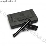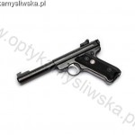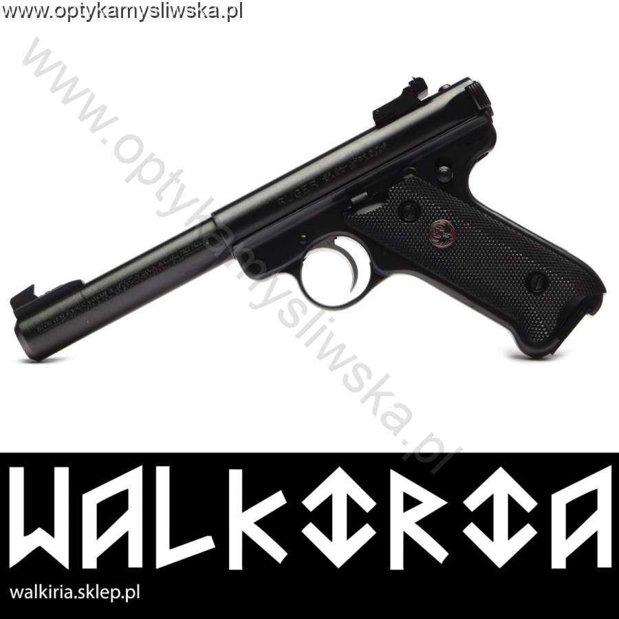 Pistolet sportowy bocznego zapłonu Ruger Mark II Target, kaliber. 22lr. Fenomenalny pistolet, który osiągnął wręcz status legendy. Niewiele osób wie, że Bill Ruger projektując ten pistolet silnie wzorował się na japońskich pistoletach Nambu Typ 14, które odkupił od powracającego z wojny żołnierza piechoty morskiej...Pistolet w stanie bardzo dobrym minus. Oksyda w stanie bardzo dobrym minus - kosmetyczne przetarcia na grzbiecie, u wylotu lufy z lewej strony oraz z tyłu okna wyrzutowego, poza którymi brak jakichkolwiek zarysowań i uszkodzeń (widoczne nierównomierności koloru powłoki pochodzą od pozostałości oleju do broni). Przewód lufy w stanie idealnym - krystalicznie nieskazitelny, potwierdzony badaniem boroskopem Hawkeye. Okładziny rękojeści w stanie bardo dobrym - brak zarysowań, wytarć i uszkodzeń. Pistolet sprawny, po przeglądzie rusznikarskim i testach na strzelnicy. Pistolet pochodzi od prywatnego użytkownika. W zestawie jeden magazynek i oryginalne plastikowe pudełko.