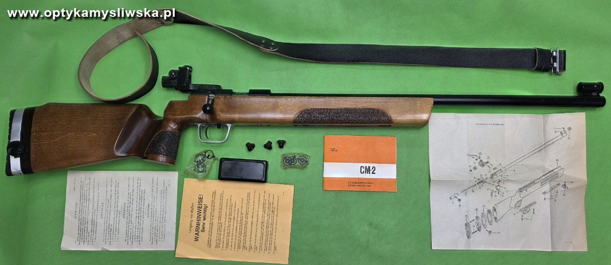 Eksportowa wersja jednostrzałowego karabinka wyczynowego- czyli z górnym montażem na szynie 11 mm oraz z piękną, kutą na zimno lufą. Grubościenna, matchowa lufa oraz regulowany mikrometrycznie w obu osiach, 20-klikowy diopter a także mucha tunelowa zapewniają doskonałą celność i powtarzalność. Bukowa osada z regulowaną stopką oraz szyną UIT, a także regulowany mechanizm spustowy. Oferowany egzemplarz został wyprodukowany w 1995 r. ale jest praktycznie nowy w tym znaczeniu, że nie nosi śladów używania. Wszystko w 100% oryginalne i zgodne numerycznie. Oczywiście lufa nieskazitelna. W komplecie praktycznie całe wyposażenie fabryczne: nigdy nieużywany pas, zestaw wymiennych insertów i przezierników (różne kształty i rozmiary), a nawet instrukcja obsługi z kartą fabrycznego przestrzelenia i schemat budowy broni.