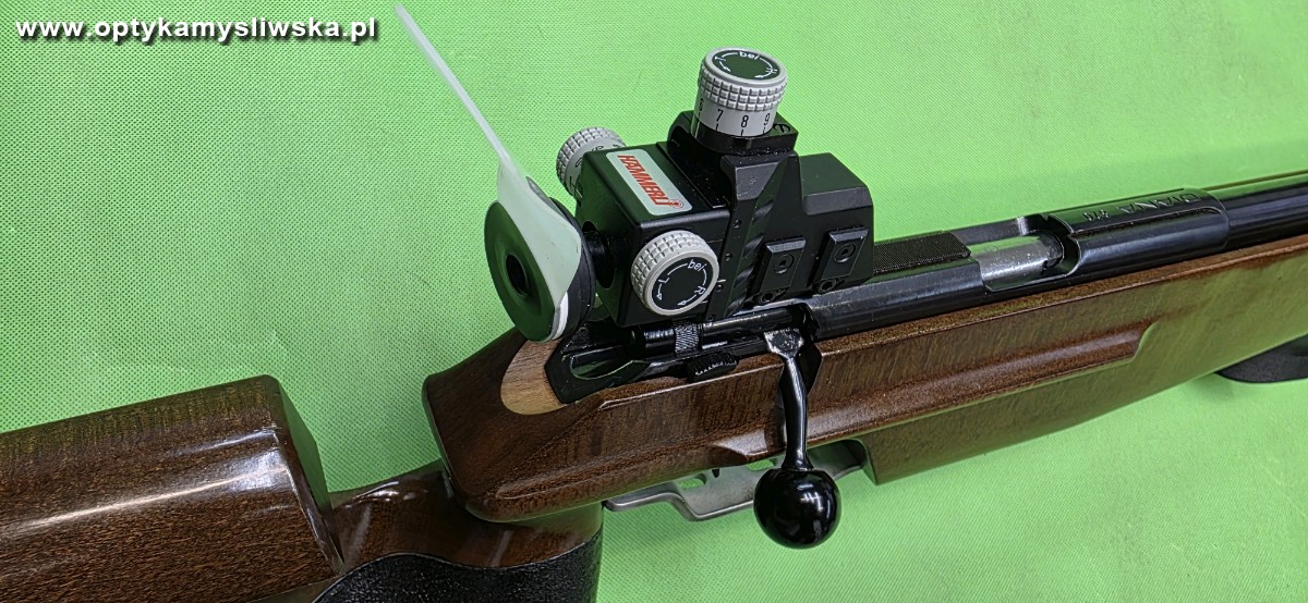 Najwyższej klasy niemiecki, jednostrzałowy karabinek wyczynowy w orzechowej osadzie typu “super match” z regulowaną baką i stopką, szyną UIT oraz handstopem i montażem pasa. Ciężka, matchowa lufa, precyzyjny, szwajcarski diopter mikrometryczny Hammerli, mucha tunelowa z transparentnym insertem. Perfekcyjny mechanizm spustowy, umożliwiający precyzyjną i pełną regulację. Oferowany egzemplarz znajduje się w doskonałym stanie i jest w pełni oryginalny oraz zgodny numerycznie. Oczywiście lufa nieskazitelna.
