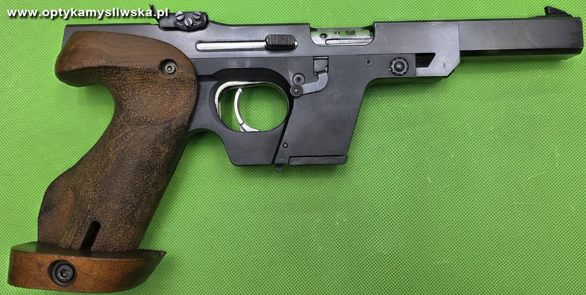 Najwyższej klasy legendarny, niemiecki pistolet wyczynowy, wprowadzony na rynek w 1968 r. i produkowany z różnymi modyfikacjami po dziś dzień. Chwyt z regulowaną półką w rozmiarze M, dźwignia ręcznej blokady zamka w tylnym położeniu. Oferowany egzemolarz został wyprodukowany w 1984 r. i nosi normalne oznaki używania, adekwatne do wieku. Technicznie jednak, broń znajduje się w bardzo dobrym stanie i jest w pełni zgodna numerycznie. Lufa nieskazitelna. W komplecie jeden magazynek.