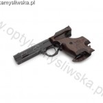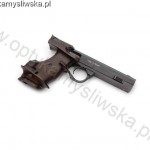 Pistolet samopowtarzalny bocznego zapłonu Baikal Mod. IŻ-35M, kal.. 22lr. Jeśli ktoś jest w stanie zaakceptować rosyjską jakość wykonania, pistolet odwdzięczy się fenomenalnymi wynikami na tarczy. Jest to absolutnie jeden z najlepszych pistoletów sportowych ze średniej półki na świecie, a w wersji rosyjskiej, nie ma sobie równych w przedziale cenowym nawet do 4000zł za broń używaną. Najlepszą rekomendacją jest wprowadzenie tego modelu do oferty pod swoją marką przez niemieckie firmy Walther, Frankonia czy Feinwerkbau.Pistolet w stanie bardzo dobrym minus - naturalne ślady użytkowania. Fosforanowa powłoka szkieletu i zamka w stanie pomiędzy bardzo dobrym minus a dobrym plus - matowa, przez co wrażliwa na wszelkie nieostrożne obchodzenie się, posiada drobne, sporadyczne wybłyszczenia i niewielkie przetarcia u wylotu lufy. Przewód lufy w stanie bardzo dobrym, potwierdzony badaniem boroskopem Hawkeye. Anatomiczna, regulowana rękojeść w stanie bardzo dobrym minus - bez zarysowań i wgnieceń; najbardziej wysunięta część jaskółczego ogona z lewej strony po profesjonalnej naprawie, nie wymagającej interwencji. Regulowana mikrometrycznie szczerbina, regulowany mechanizm spustowy z możliwością przesuwania języka spustowego. Pistolet sprawny, po przeglądzie rusznikarskim i testach na strzelnicy. W zestawie jeden magazynek. Pistolet pochodzi od prywatnego użytkownika.