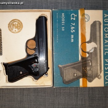 Sprzedam CZ vz. 50 w kal 7,65 Brow / 32ACP z oryginalnym pudełkiem i szczotką. Rok produkcji 1969. Pistolet jest w świetnym stanie wizualnym jak i mechanicznym, oczywiście ze względu na wiek posiada ryski i zmatowienia na zamku oraz szkielecie. Lokalizacja woj. Lubelskie pow. Parczew