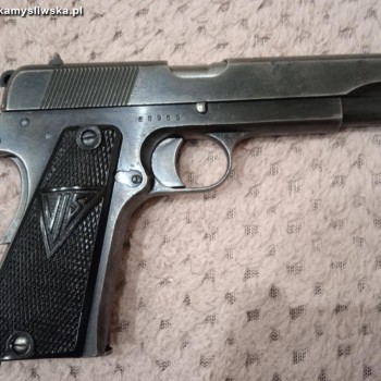 RADOM P35 VIS W STANIE ORYGINALNYM,ZGODNY NUMERYCZNIE Z ŁADNYM ORYGINALNYM MAGAZYNKIEM,PIĘKNE ORYGINALNE OKŁADKI.POSIADA PUNCĘ BRAKARSKĄ FABRYKI BRONI W RADOMIU CO CZYNI GO CIEKAWYM.LITERA E PIERWSZEGO ALFABETU BEZ MOCOWANIA DO KOLBY.EGZEMPLARZ DO KAŻDEJ POWAŻNEJ KOLEKCJI.