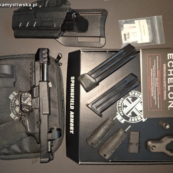 Na sprzedaż zestaw jak na zdjęciu: Springfield Echelon 3-Dot Tritium z gwintem, zakupiony 28-05-2025. W komplecie kolimator Vector Optics Frenzy 1x22x26 MOS (trzy warianty kropki), kompensator firmy Springer Precision wraz „kluczem” ułatwiającym odkręcanie, Kabura Doubletap OWB Strighter Holster o...