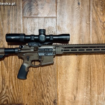 Odsprzedam karabin AR15 w kalibrze 5,54x45 NATO. Wystrzelane ok 650 szt amunicji. W zestawie to co fabrycznie, czyli spust milspec, magazynek 30 nabojowy, walizka oraz niewidoczny za zdjęciu przedni grip. Luneta i montaż nie są w zestawie.