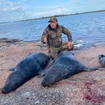 Jedyną widoczną częścią foki jest głowa lub szyja, więc tam musimy oddać strzał. Po strzelaniu foki zwykle toną, ale miejscowi podnoszę je specjalnymi hakami i harpunami w zależności od głębokości. Foki można oskórowć samemu lub mogą to zrobić za dodatkową opłatą miejscowi.