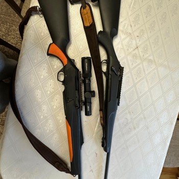 Sprzedam Browning Bar MK3 9,3x62 wraz z lunetą Delta Titanium 1-5,8x24 i montażem (szyna). Sprzęt zakupiony w 2017. Drugi magazynek w komplecie. Komplet idealny na polowania zbiorowe. Wystrzelone około 80kul. - 7500zł Druga karabin Haenel Jaeger 10, kal. 30-06, osada syntetyczna, lufa gwintowana, mo...