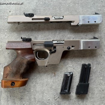 Sprzedam satynowy, dwu systemowy zestaw Walther GSP. Pistolet w kalibrze. 32 S&W oraz konwersja. 22 lr. Stan techniczny bardzo dobry, wizualny dobry. Nosi kilka przetarć i ślad po naklejce, którego nigdy nie próbowałem zdrapać. Pistolet jest celny, strzelam z niego 90+ pkt. Możliwość sprzedaży osobn...