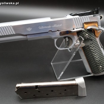 Beretta 92 FS Stainless Golden - cała nierdzewna z pozłacanymi grawerami - kal. 9x19 Parabellum - rok produkcji 1996 - 2 magazynki - oryginalny kuferek wraz z wyposażeniem - regulowana szczerbinka (oryginalna jest w zestawie) - piękne orzechowe chwyty (drugi komplet w zestawie) - zestaw kolek...